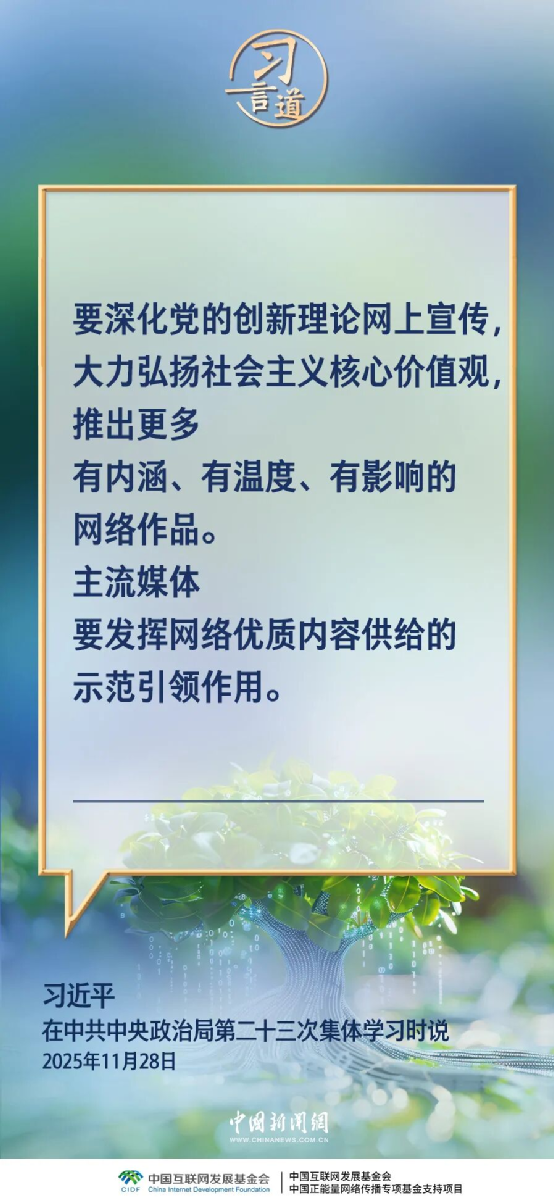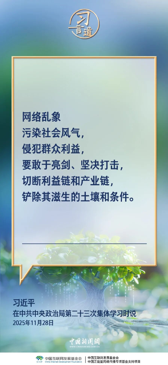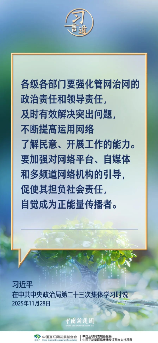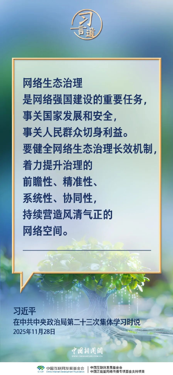 中共中央政治局11月28日就加强网络生态治理进行第二十三次集体学习。中共中央总书记习近平在主持学习时强调——